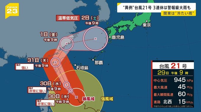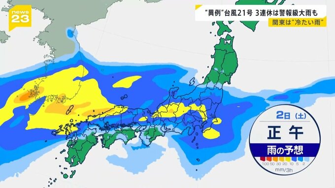 “異例”台風21号 3連休は警報級大雨も 関東は“冷たい雨”