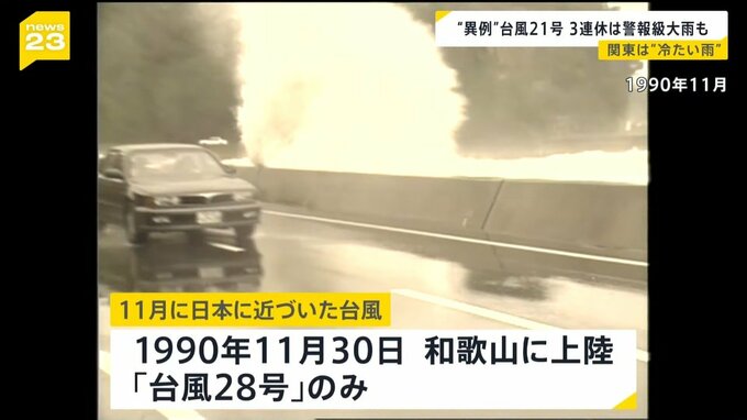 11月に台風が日本列島へ近づくのは、1990年11月30日に和歌山県白浜町に上陸した「台風28号」のみで、接近すれば異例なことです。