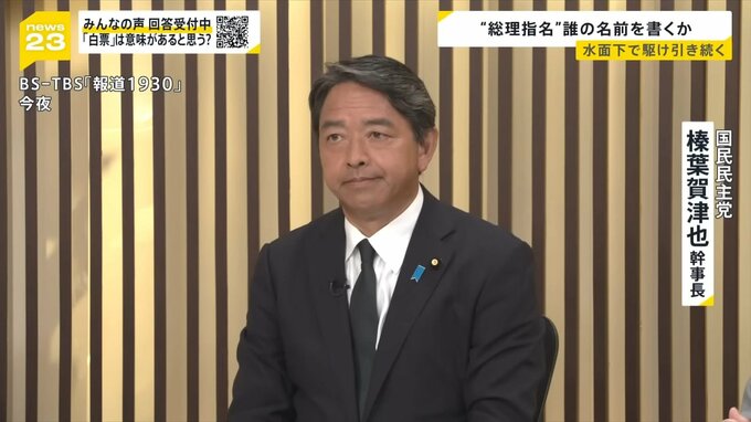 29日夜、BS-TBSの番組に出演した国民民主党の榛葉幹事長は…