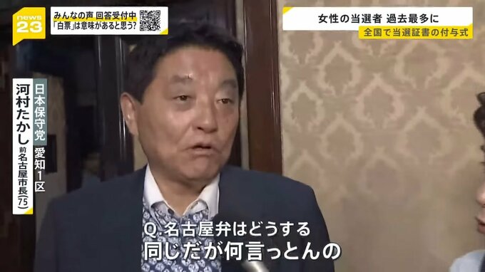 日本保守党 愛知1区 河村たかし 名古屋市長(75)