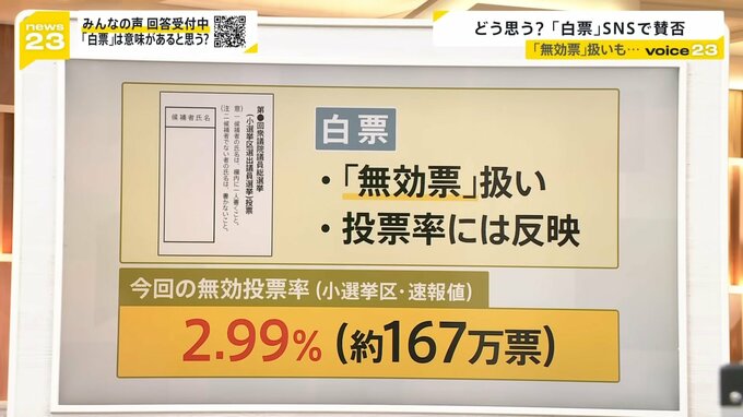 「白票」SNSで賛否 無効票扱いも