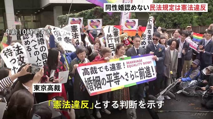 同性同士の結婚を認めないのは憲法違反にあたるとして同性カップルら7人が国に賠償を求めた裁判の判決で、東京高裁は同性同士の結婚を認めない今の民法などの規定は「憲法に違反する」との判断を示しました。この…