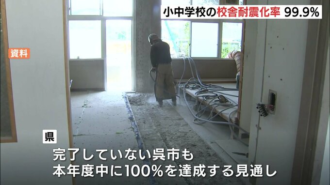 文部科学省によりますと、県内にある公立小中学校の校舎の耐震化率は、4月1日時点で99.9%で、前の年度より0.2ポイント上昇しました。