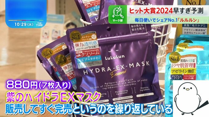 中でも特に人気なのが『ルルルン』シリーズの「紫のハイドラEXマスク」(7枚入り880円)。販売と同時に完売するほどの超売れ筋だといいます。