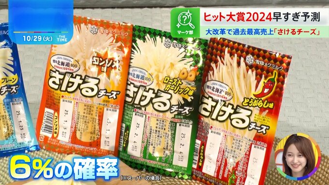 ヒット大賞“ランクイン予測”3つ目は、8月に過去最高の売り上げを記録した「さけるチーズ」(雪印メグミルク)です。