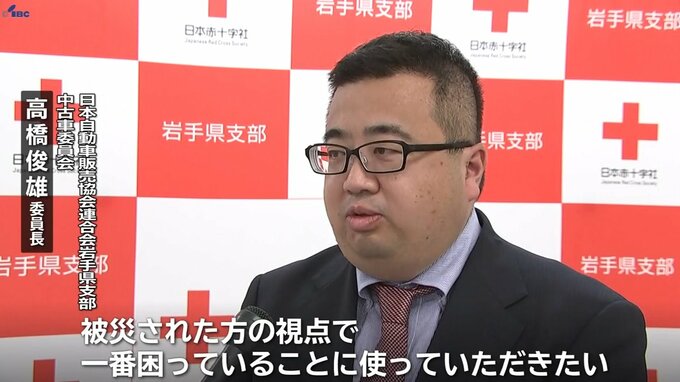 義援金を贈ったのは、日本自動車販売協会連合会岩手県支部です。