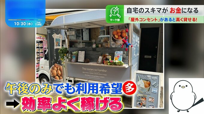 東京・板橋区にある牛乳店は、午後は使わない店前スペースを貸し出しています。コンセントもあるので、午後のみでも利用希望は多く、1か月最大1万2516円の副収入になるといいます。
