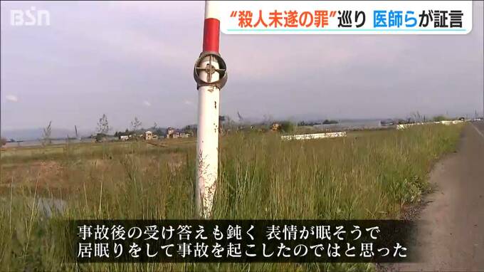 「左にそれるような挙動が10回あり、道路左側の“のり面”に車が突っ込んだ。事故後の受け答えも鈍く、表情が眠そうで、居眠りをして事故を起こしたのではと思った」