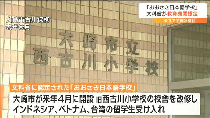 文部科学省の認定を受けたのは、大崎市が来年4月に開設する「おおさき日本語学校」です。旧西古川小学校の校舎を改修しインドネシア、ベトナム、台湾の留学生を受け入れます。