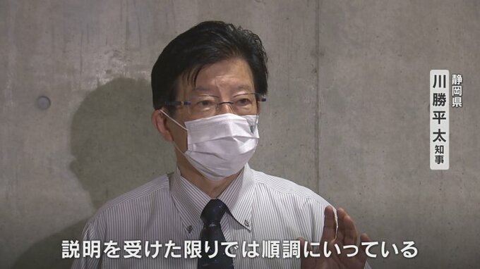 川勝知事はリニア中央新幹線の静岡工区、8.9キロの着工を認めておらず、今月7日には視察した神奈川県駅での工事の進捗状況を根拠にして計画通りの2027年の開業や部分的な開業は困難という見方を示しています。