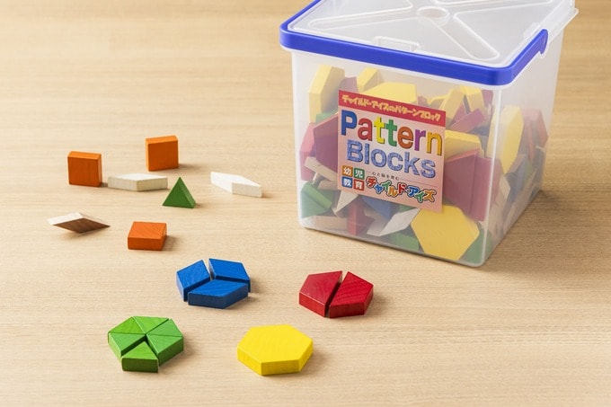 「娘がバランスよく力を伸ばせたのは、ほどよい緊張感のある『小学校受験コース』と『知能育成コース』を並行して受けたおかげ。『知能育成コース』には教材がたくさんありますが、娘が特に好きだったのは『パターンブロック』です。正六角形、台形、ひし形などの図形ブロックを使って、算数の基礎となる力を身に付けることができます。また『数の将棋ゲーム』というゲーム性の高い教材も印象に残っています」