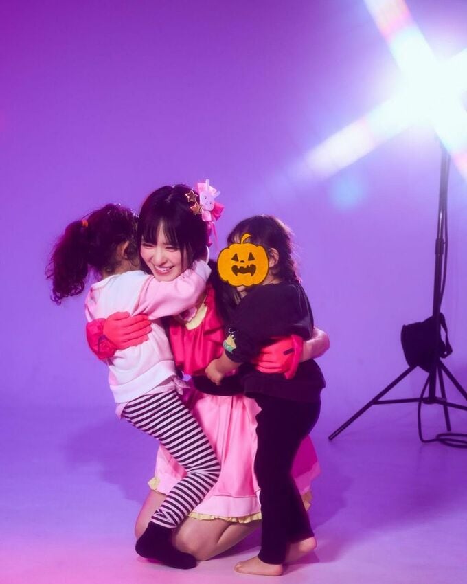 藤咲さんのコスプレ姿に「可愛い可愛いって沢山言ってもらえました ママみたいなアイドルになりたいって言われました!」と、子どもたちに絶賛されたことを明かし、「世界一しあわせ」と喜びを綴りました。