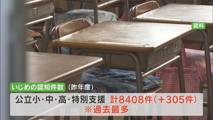 この調査は全国で毎年行われているもので、昨年度、県内の公立の小中高校 それに特別支援学校のいじめの認知件数は8408件でした。