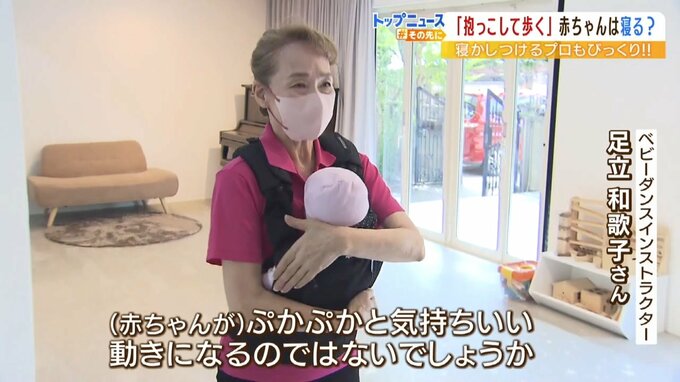 ベビーダンスは歩く動きを基本とする社交ダンスをベースにしています。抱っこで肌が触れ、動くことで赤ちゃんも安心でき、一瞬で寝つくこともあるといいます。