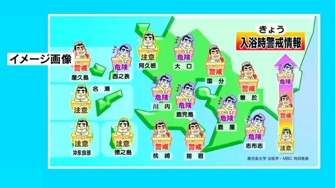 浴室内突然死、いわゆる入浴死を防ごうと、鹿児島大学大学院とMBCは共同で「入浴時警戒情報」を発表しています。リスクが高くなる冬を前に、今年度はあす11月1日から運用を開始します。入浴時警戒情報は、鹿児島大…