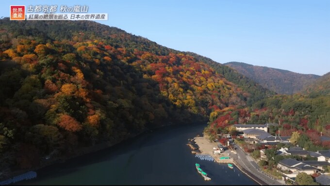 日本の世界遺産には、紅葉の名所がいろいろとあります。番組「世界遺産」でも度々撮影してきたのですが、特にドローンで上空から撮ると、緑の森の中に黄色、オレンジ、緋色と暖色系の木々が点々と入り交じり、印象派の絵画のような美しさです。