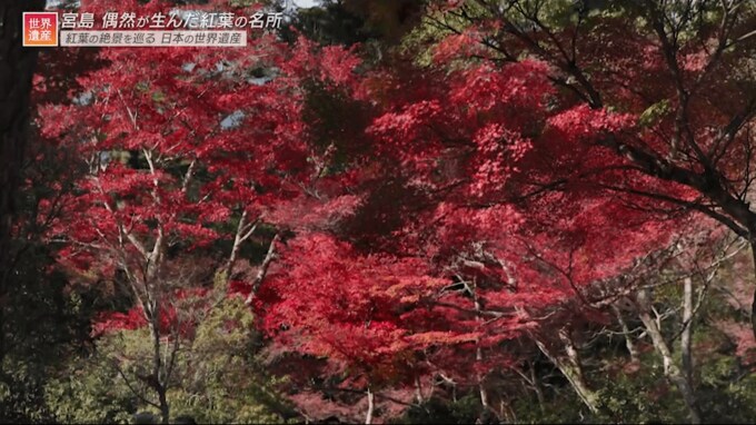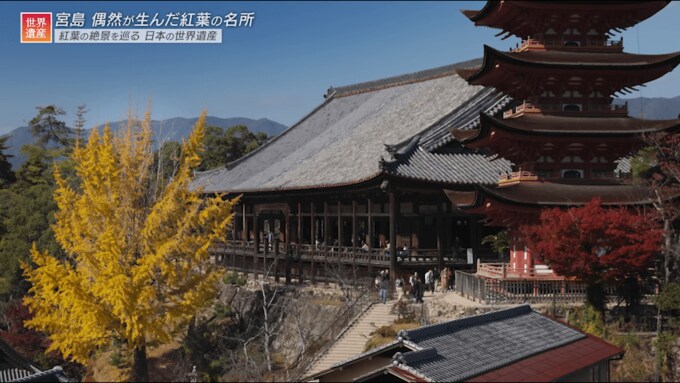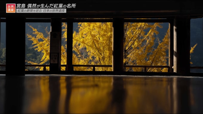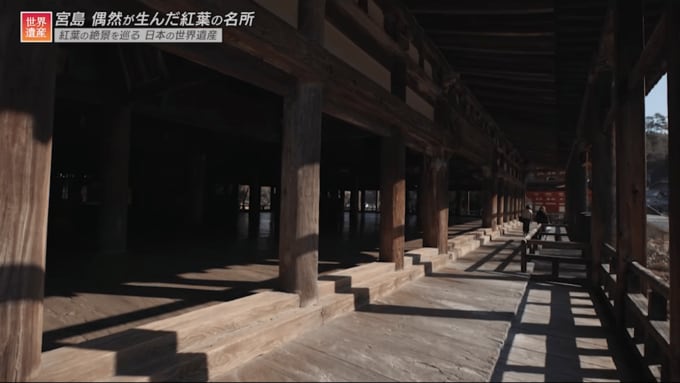 宮島には、人と偶然が生み出した紅葉の名所もあり、そこも番組で撮影しました。世界遺産「嚴島神社」の末社・豊国神社の「床もみじ」です。