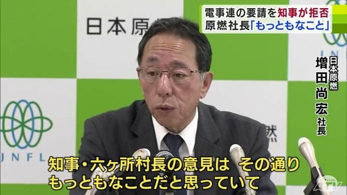 青森県に対してフランスから返還される「放射性廃棄物」を「高レベル」で受け入れて欲しいとする電気事業連合会の構想についてです。日本原燃の増田尚宏社長は、宮下知事が構想を拒否したことに理解を示しました。…