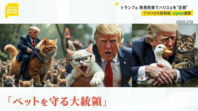 トランプ氏は猫などと一緒に映った合成写真を投稿し「ペットを守る大統領」とアピール。