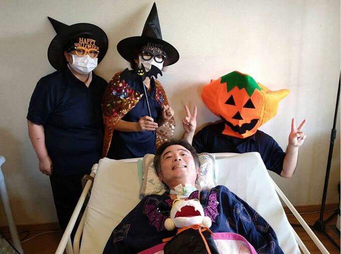 「訪問入浴のエミールさんがハロウィン仕様でいらしてくれました! こういう素敵なみなさんなのです お風呂で体が温まってスッキリしただけでなく 心もポカポカになりました 免疫力アップです、嬉しいな! 本当に感謝しています♪」と季節感を忘れない周囲の気遣いに感謝の言葉を綴っていました。