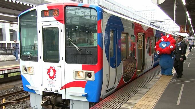 来年春から開催される大阪・関西万博を盛り上げようとラッピング列車が運行されることになり、きょう(1日)お披露目されました。