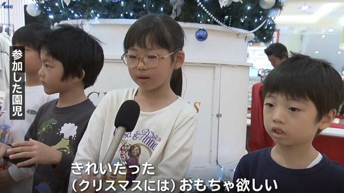 ツリーに飾り付けられた4000球のLED照明に明かりがともされた後は、サンタクロースから参加した園児たちにクリスマスプレゼントが配られました。
