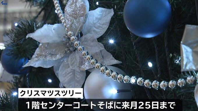 このクリスマスツリーは、1階のセンターコートそばに12月25日まで飾られます。