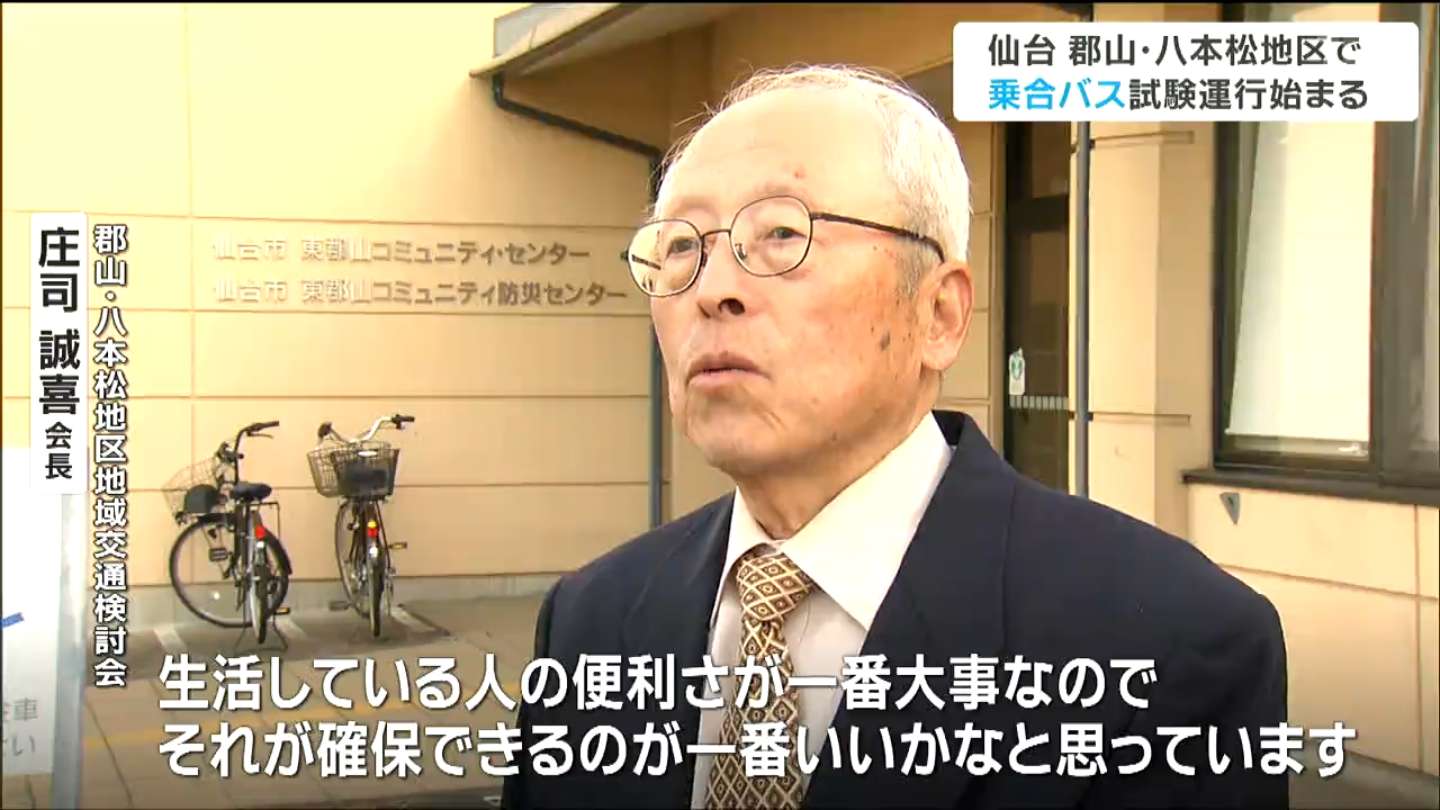 仙台市太白区の郡山・八本松(はちほんまつ)地区で乗合バスの試験運行が始まりました。