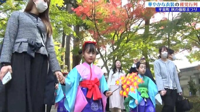 岩手県平泉町で1日、奥州藤原氏の栄華をしのぶ、「秋の藤原まつり」が始まり、中尊寺では華やかな衣装を着た子どもたちの稚児行列が行われました。稚児行列には平泉町などの4歳から7歳の子ども24人が参加しました…