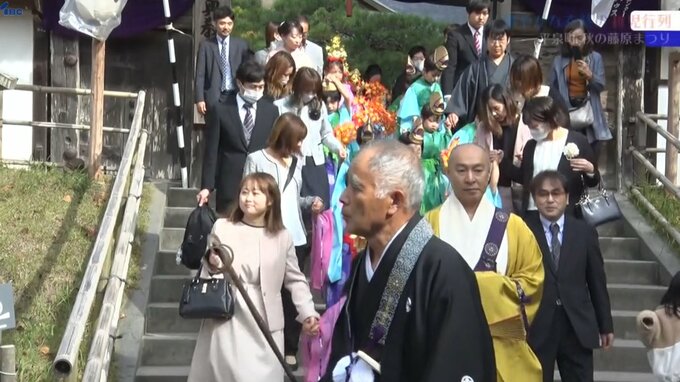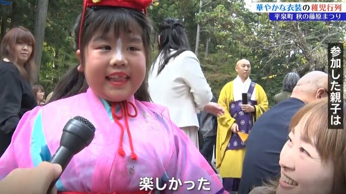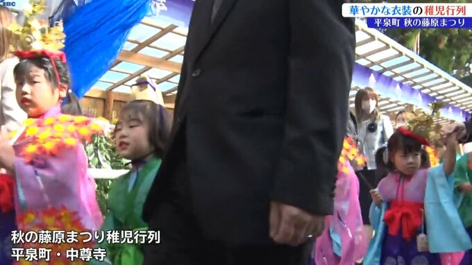 岩手県平泉町で1日、奥州藤原氏の栄華をしのぶ、「秋の藤原まつり」が始まり、中尊寺では華やかな衣装を着た子どもたちの稚児行列が行われました。