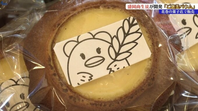 商品開発を学ぶ盛岡商業高校の生徒が手がけた新しいスイーツの販売が始まりました。特別な気分を味わうバウムクーヘン、その名も「ご褒美バウム」です。花巻の人気スイーツ「イギリス海岸ハードバウム」の穴の部分…