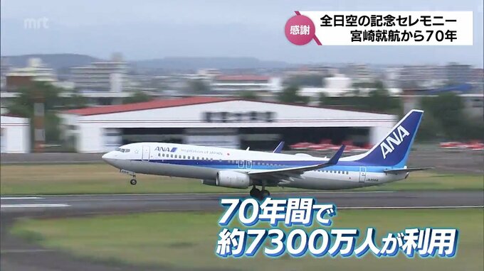 全日空が宮崎に就航して1日で70年を迎えます。宮崎空港では、利用者への感謝の気持ちを込めた記念セレモニーがありました。全日空が宮崎に就航したのは、今から70年前の1954年11月1日、前身となった「極東航空」が…