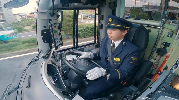 まだ3か月間の研修を終えたばかりの上川さん。この日は2度目の営業運転で、130キロ先の京都駅に向かいます。デビューは果たしたものの、営業運転中はしばらくは?指導担当が立ち会います。先輩に見守られながら、独り立ちに向けて慎重にハンドルを握ります。