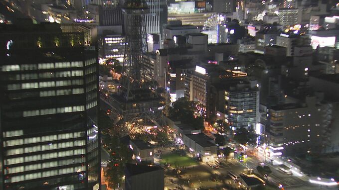 「オアシス21の広場は閉鎖され、人通りはまばらですが道を挟んで反対側、久屋大通パークには、たくさんの人が詰めかけています」