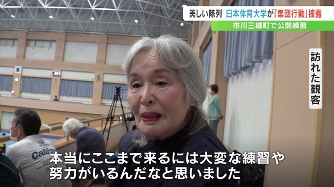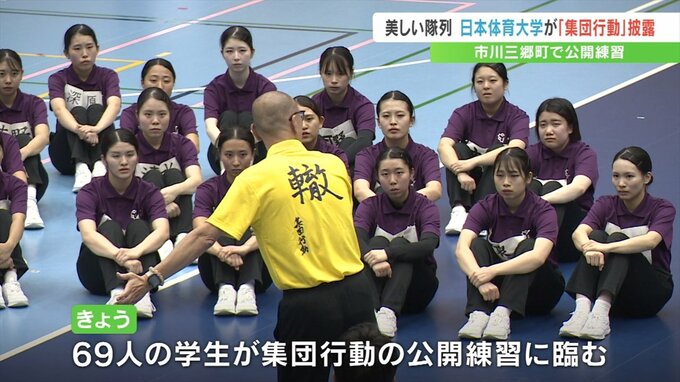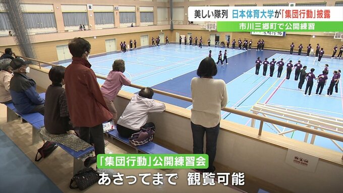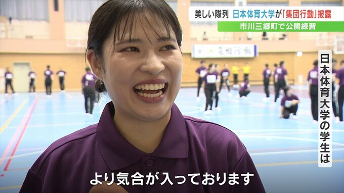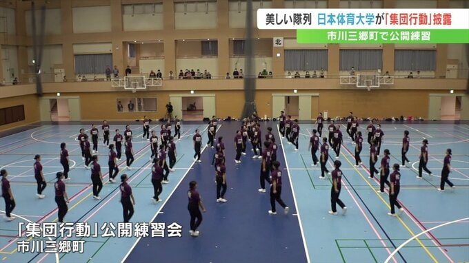 集団行動で有名な日本体育大学が山梨県市川三郷町で公開練習を行い、学生たちが美しい隊列を披露しました。