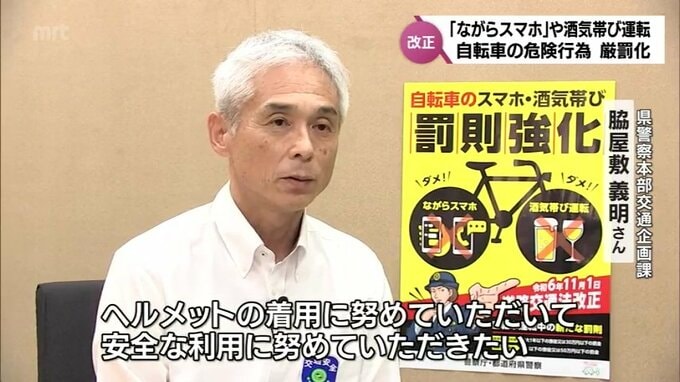 「携帯電話違反、酒気帯び運転についてはもちろんだが、その他の交通ルールについてもしっかり守っていただいて、また、ヘルメットの着用に努めていただいて、安全な利用に努めていただきたい」