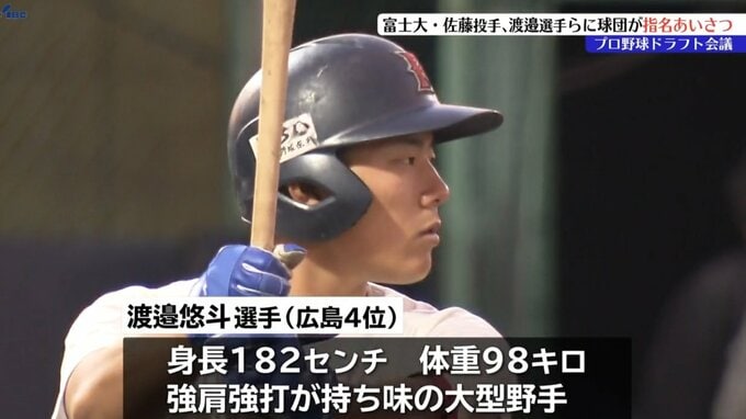 同じく広島から4位指名された渡邉悠斗選手は、身長182センチ体重98キロの大型野手で強肩強打が持ち味です。