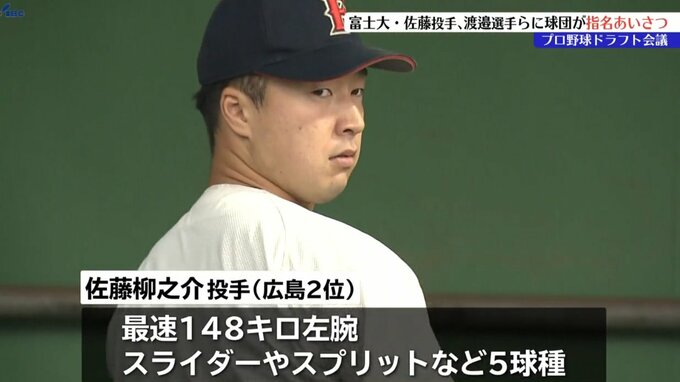 広島から2位指名された佐藤柳之介投手は、最速148キロのストレートに加えスライダーやスプリットなど5つの変化球を操る左腕です。