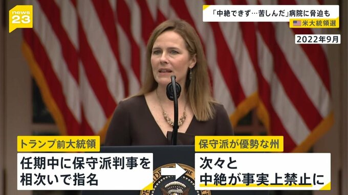 連邦最高裁が女性の中絶の権利を覆す判断を下したのです。トランプ前大統領が任期中に、保守派の判事を相次いで指名したためで、この判断を受け、保守派が優勢な州では次々と中絶が事実上禁止となりました。クロエさんが住むアリゾナ州でも州法が適応され、医師から「手術はできない」と告げらました。