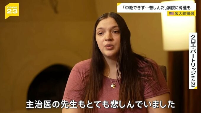 “中絶が合法な州”を探し、車で13時間ほどのコロラド州の病院で手術を受けることを決意。足りない手術の費用を集めるためSNSで寄付を募りましたが「赤ちゃんを殺すくらいなら自殺しろ」「おまえに母親になる資格なんてない」など、中絶に反対する保守派の人々が、クロエさんや病院を脅迫。手術を断念せざるを得なくなりました。