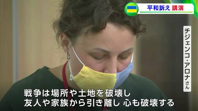 ウクライナから日本へ避難し、総社市の臨時職員になった女性が、総社市内の中学校で講演し「平和の尊さ」を訴えました。(チジェンコ・アロナさん)「この戦争が早く終わるように、心から一緒に願いましょう」総社…