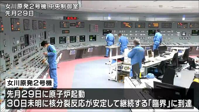 女川原子力発電所2号機は先月29日に原子炉を起動し翌30日未明に核分裂反応が安定して継続する「臨界」に達しました。