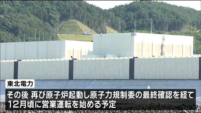 東北電力は今後原子炉を一度停止して設備の安全点検を行うことにしています。その後、再び原子炉を起動して原子力規制委員会の最終確認を経て12月頃に営業運転を始める予定です。