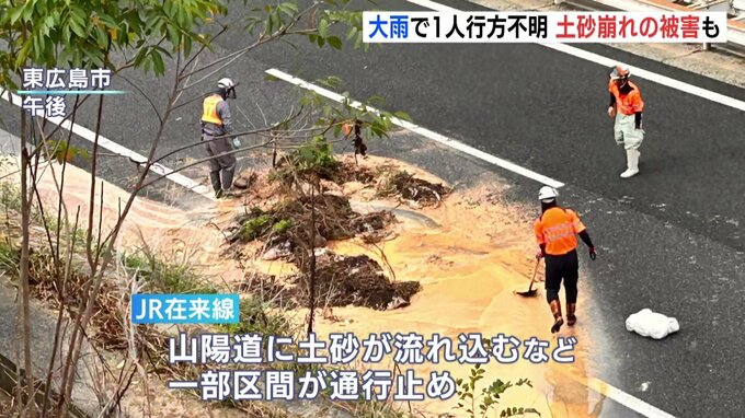 広島県内は午前を中心に季節はずれの大雨となりました。この雨で男性1人が行方不明になったほか、交通機関にも大きな影響が出ました。