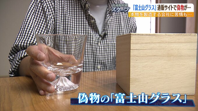 底の部分に富士山がデザインされた『富士山グラス』は、1個5500円と決して安くはないが、これまでに70万個販売された人気の商品だ。今このグラスの偽物が出回っているという。