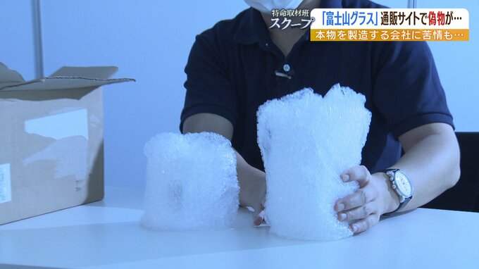 『お前の所がしっかりやっていないから俺が騙された』富士山グラスの偽物が大量流通...本物の会社に苦情殺到「これを作っていると思われたらつらい」 毎日放送 2022年9月15日(木) 15:53 国内 暮らし・マネー 偽物販売のサイトから購入すると『梱包が雑』『納品書などが入っていない』 Aさんが利用したとみられる通販サイトを見てみると…。 (記者リポート) 「偽物の富士山グラスが売られている通販サイトを少し見てみますと、現在、大幅な値下げをやっているようで2点で5390円となっています」 サイトには、グラスの底にデザインされた富士山が注いだ飲み物の色に変わる様子の動画や、本物の富士山グラスの写真などが許可なく掲載されている。 取材班もこのサイトで販売されているグラスを購入してみた。 (記者リポート) 「梱包された富士山グラスが2つです。梱包の仕方もかなり雑なように思います。本来ならば納品書や証明書などの書類が入っているのですが中は空っぽですね」