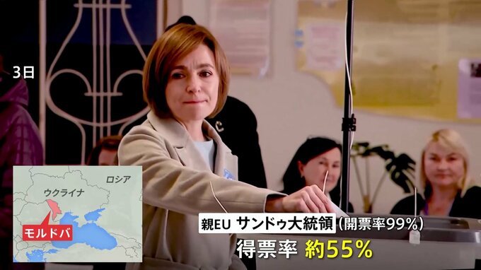旧ソ連のモルドバで大統領選挙の決選投票が行われ、親欧米派の現職が勝利を宣言しました。3日に行われた決選投票は、開票率99%の時点でEU加盟を目指す現職のサンドゥ大統領が55%を獲得しています。サンドゥ氏は…