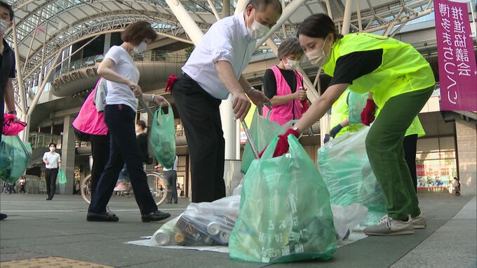 JR博多駅周辺で毎月実施されているボランティアの清掃活動が、15日で300回目を迎えました。清掃活動は午前8時すぎから博多駅の博多口周辺で行われ、周辺の企業や地域の住民ら約300人が参加しました…
