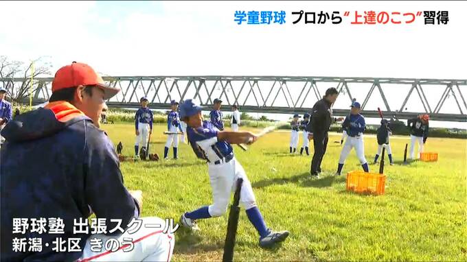 新潟市の学童軟式野球チームを対象にした「野球塾」が開かれ、オイシックスの選手が熱血指導しました。