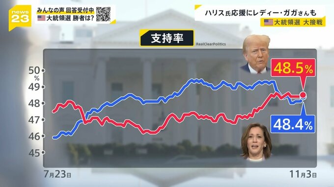 最終日となる4日のハリス氏の集会には、世界的な人気歌手レディー・ガガさんやケイティ・ペリーさんらが応援に駆けつける予定です。